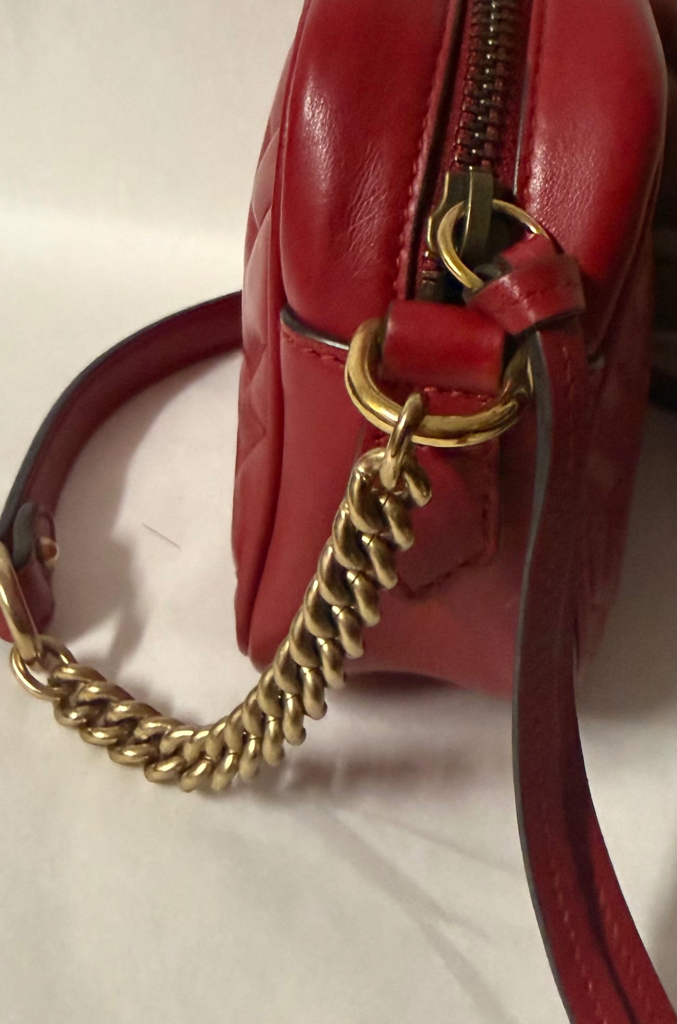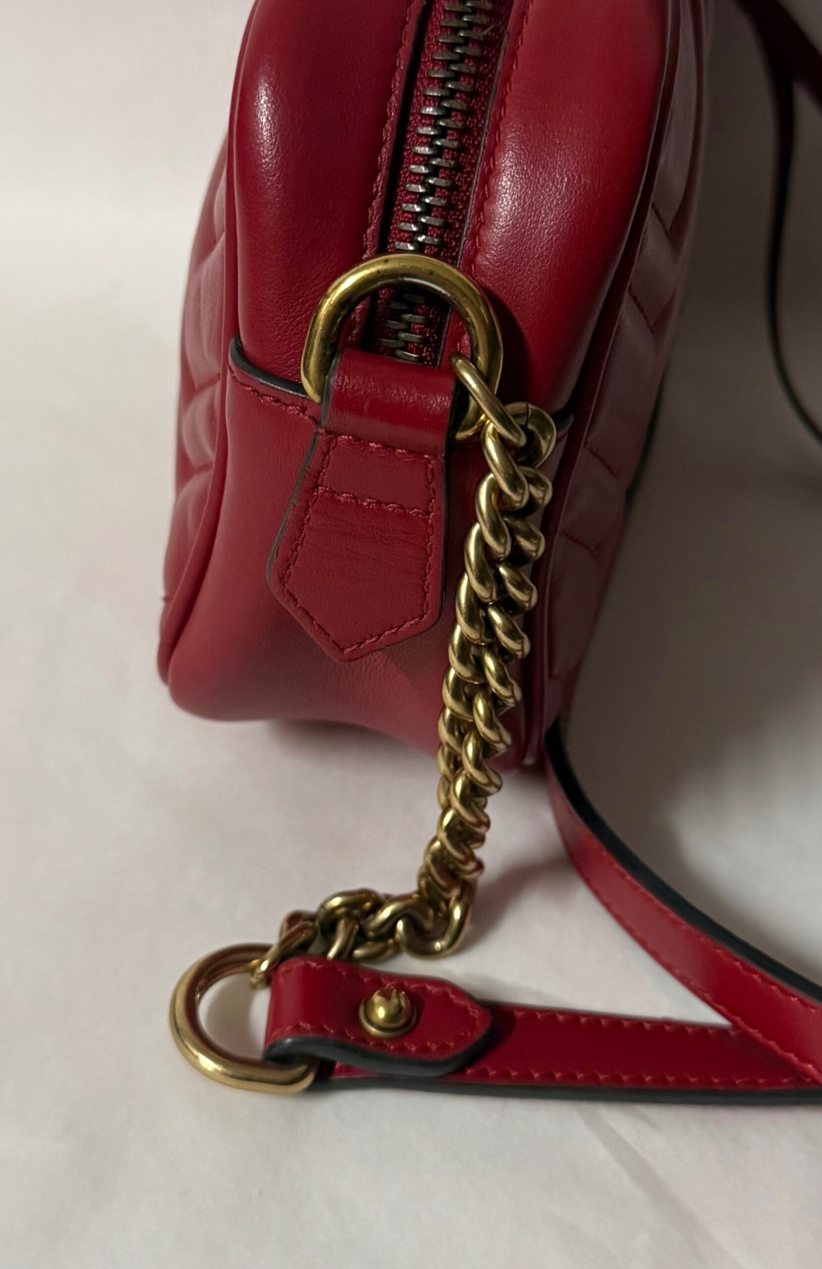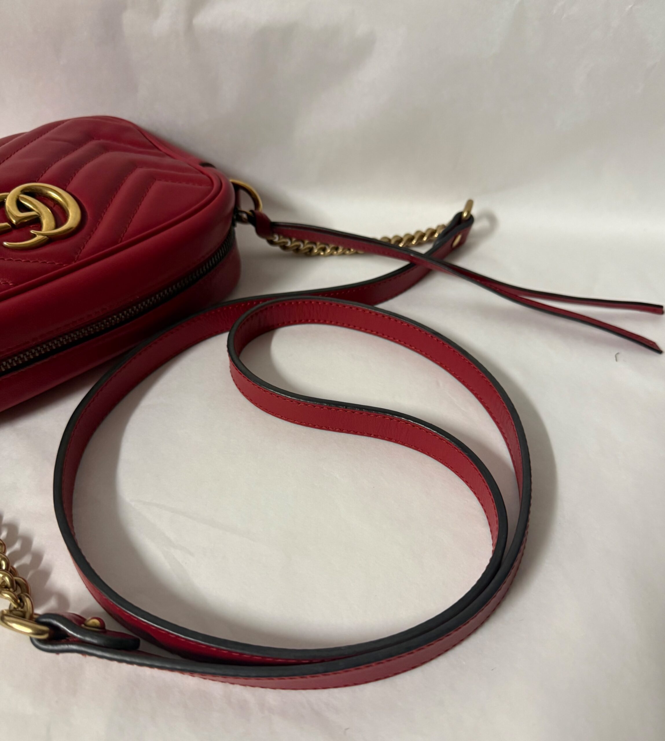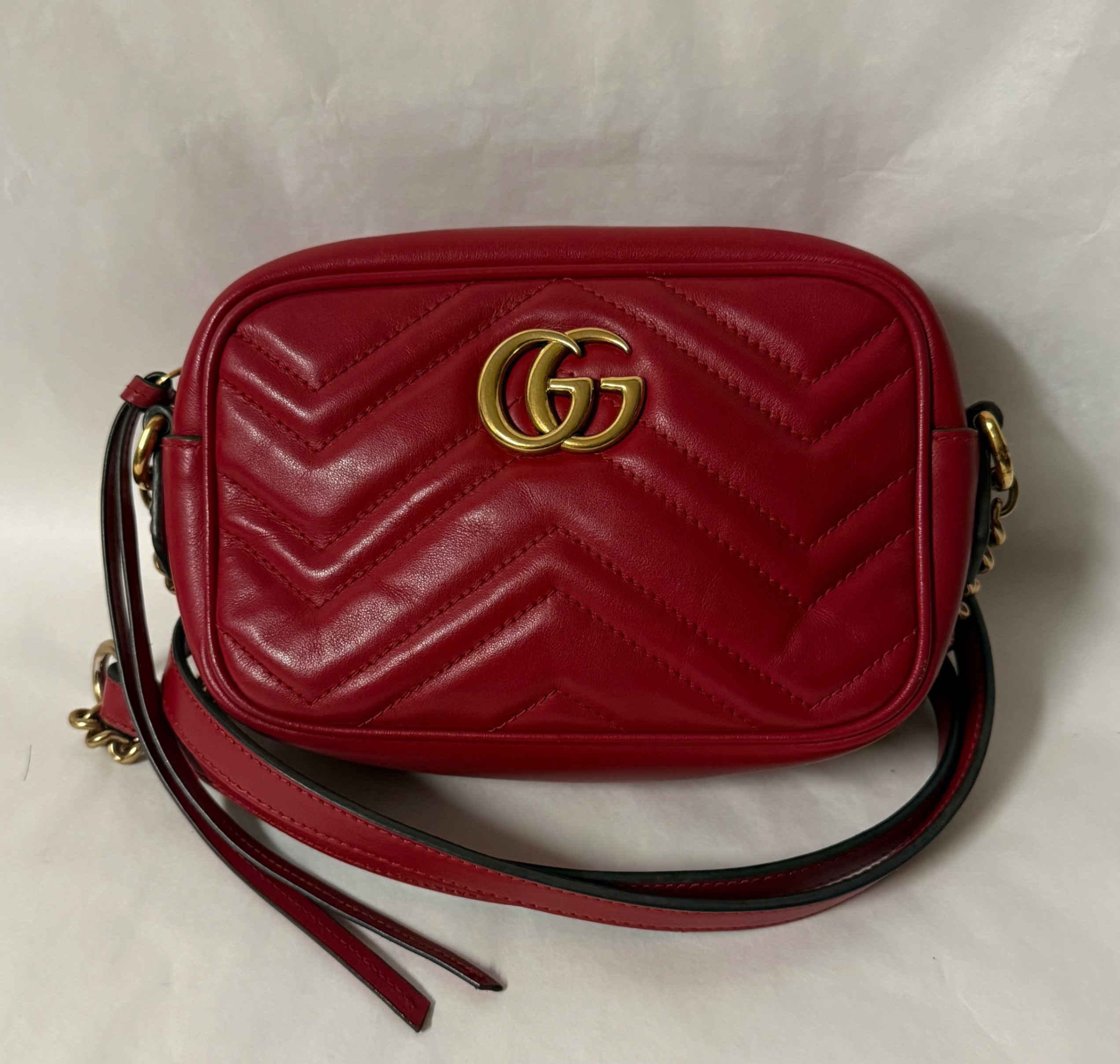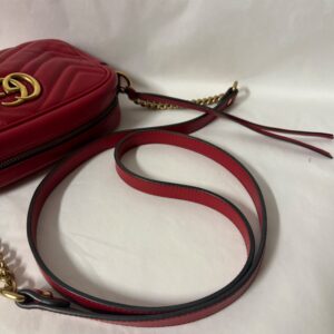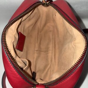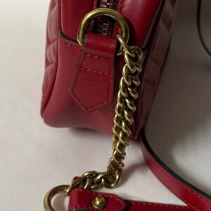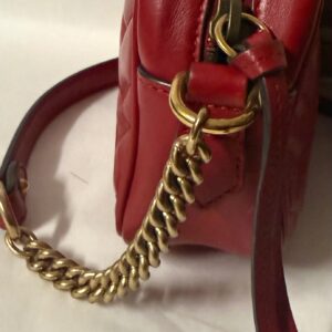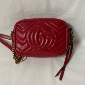 Gucci Marmont en color rojo, un bolso icónico que nunca pasa de moda. Su diseño sofisticado con el clásico logo GG en el frontal lo convierte en el complemento perfecto para cualquier look, desde el más casual hasta el más elegante.